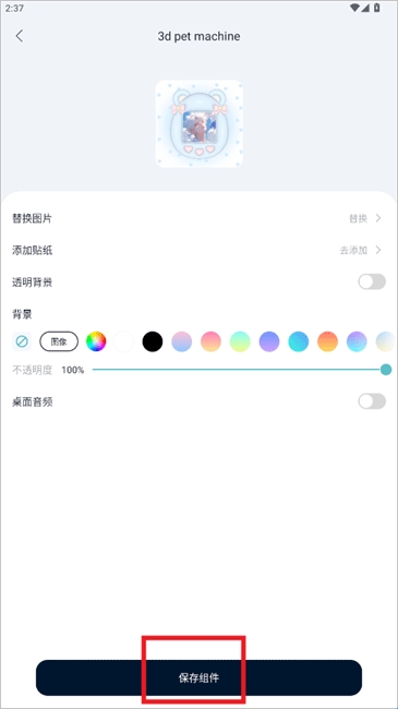 2、设置小组件样式,完成后,点击保存组件。