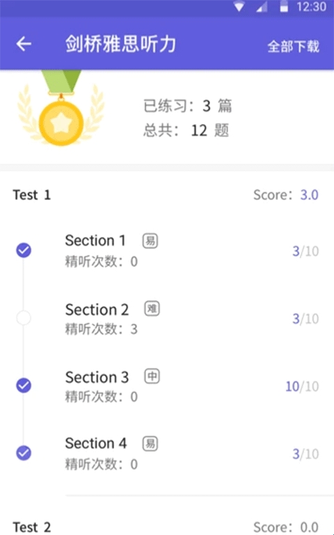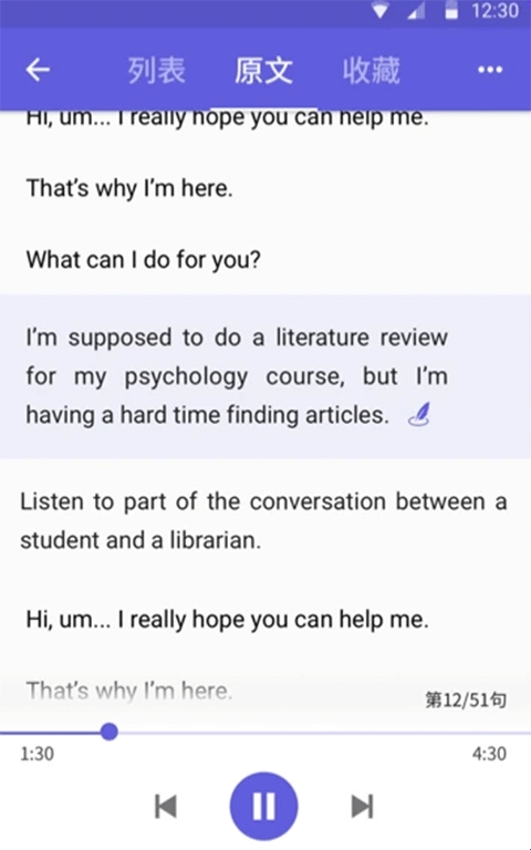 2、听听力,可以实现逐字精听不懂的可以重来。