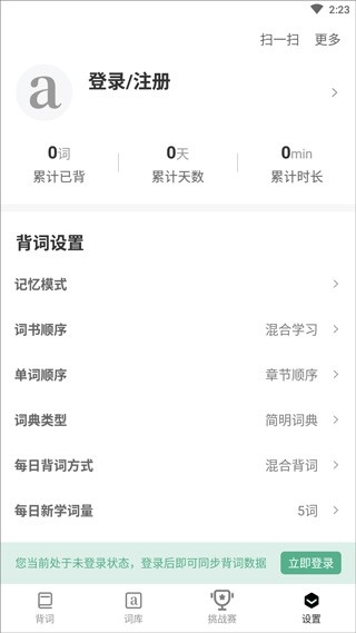 2、点击挑战赛,你可以报名参加背词挑战赛。