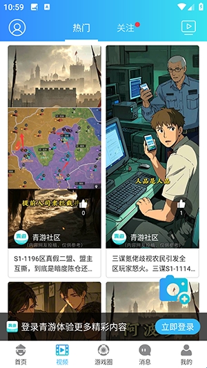 青游是一款专门为SLG玩家研发的交流社区,玩家可以在软件里自由交流游戏玩法,阵容推荐,软件上还有很多大神发布的游戏攻略,对于新手来说很友好。软件里面还有官方发布的游戏礼包码,玩家可以上号兑换奖励。青游app是一个非常有好的交流社区,slg玩家可以下载体验一下。