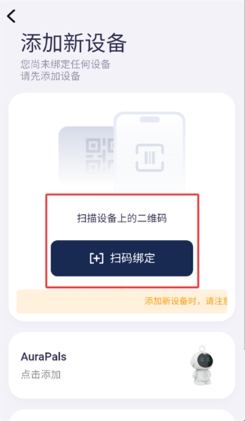 1、启动APP后,在设备管理页面点击"添加新设备"按钮,进入配对流程。