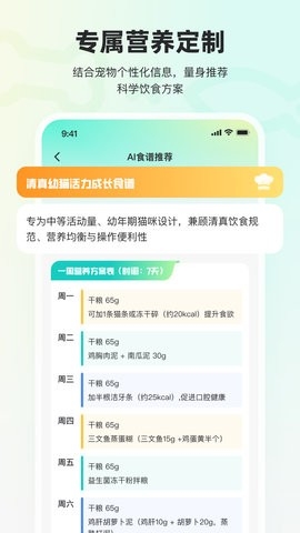 3、根据宠物品种、年龄、体重、体质特征与健康状态,量身定制科学饮食计划。