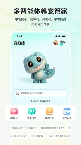 2、聚合宠物医生、营养师、行为训练师、美容顾问等专业角色,基于宠拍档AI大模型提供全方位陪伴式守护。