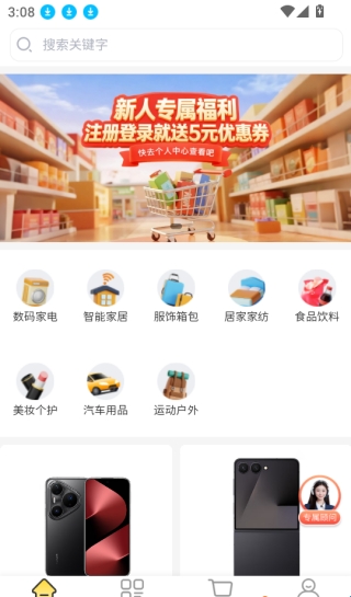 1、打开软件中用户就可以选择商品种类,能够在这里查找心仪的商品资源。