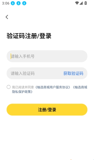 1、进入软件登录界面,用户输入手机号和验证码就可以注册并登录软件了。