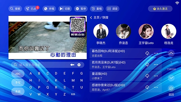 2、操作简单便捷:不用复杂设置,点歌演唱一步到位,老人小孩都能轻松使用,对手机配置要求低,旧手机也能流畅运行。