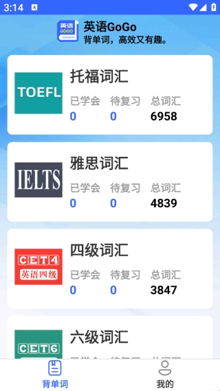 英语gogo是一个专门学习英语的app,软件可以学习英语的单词和英语口语发音。用户可以自己在软件选择需要学习的知识面,有很强的自主性。如果有不会规划学习计划的用户可以跟着软件上的学习计划进行学习,提高用户的学习能力和学习技巧。