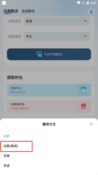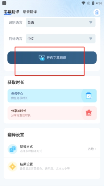4、然后选择识别语言以及翻译目标语言,点击开启字幕翻译即可。
