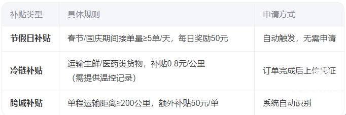 奖励标准:每单额外补贴10-30元(根据货物类型和距离浮动)