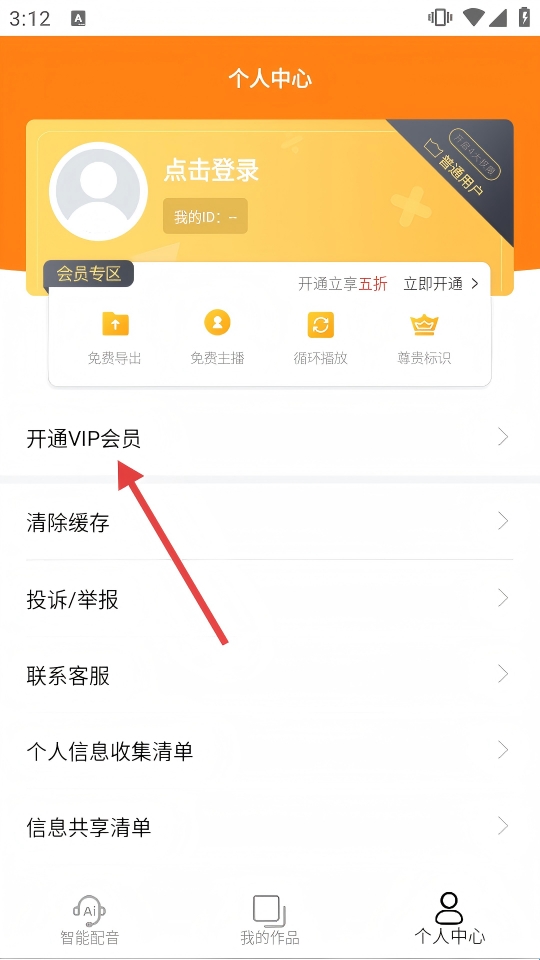 2、在个人中心界面,点击【开通VIP会员】选项,进入会员中心页面。