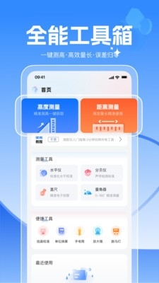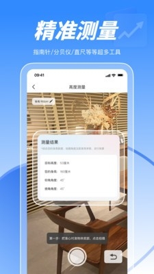 3、除了实时测距功能外,AR距离测量仪还具有水平仪、光感仪、手电筒、指南针、直尺工具、量角器等实用小工具。