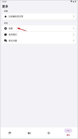 1、打开破壳萌图鉴,进入后点击右下角更多,选择设置。