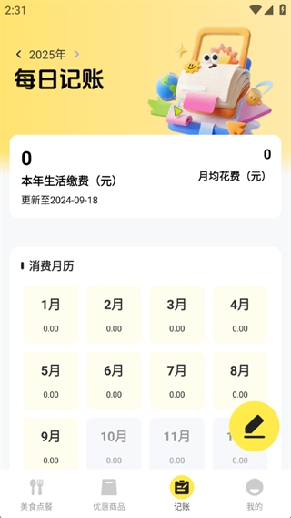 3、除美食相关功能外,还具备每日记账功能,助力用户管理个人财务,满足多方面生活需求。