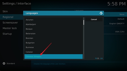 kodi怎么设置中文