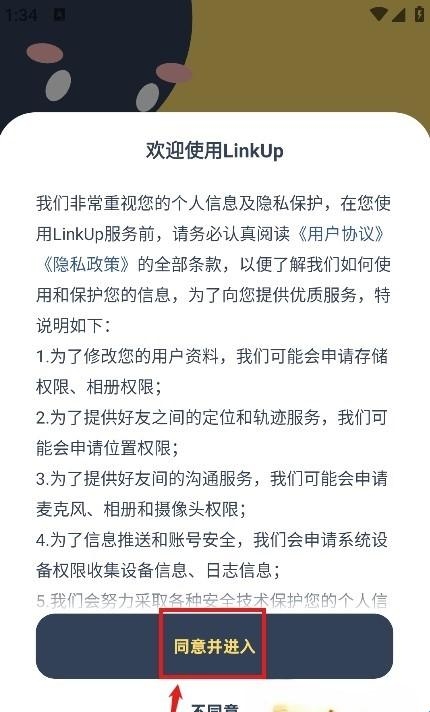 4、情侣定位软件怎么用?打开app用户们先点击“同意并进入”。