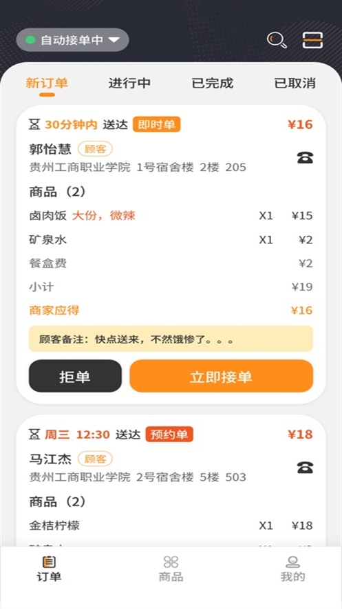 在线可实时关注和管理订单,知道各个订单的状态,以便能及时取货并送达。