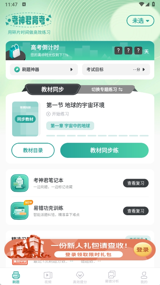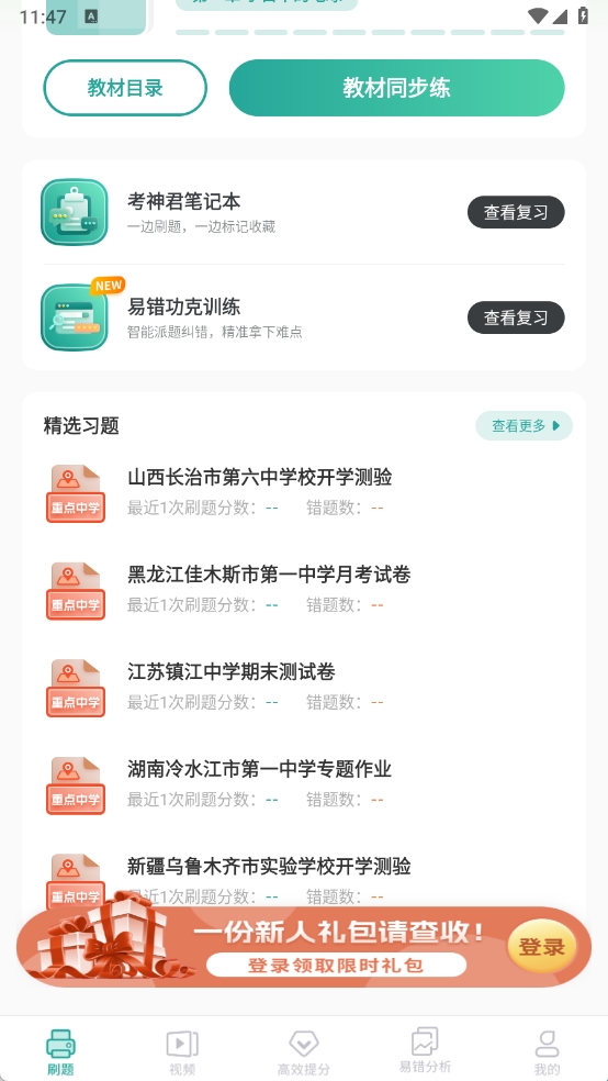 2、科学分类模块:提供易错本、笔记本、自学资料和闯关题型四大模块,分类清晰。