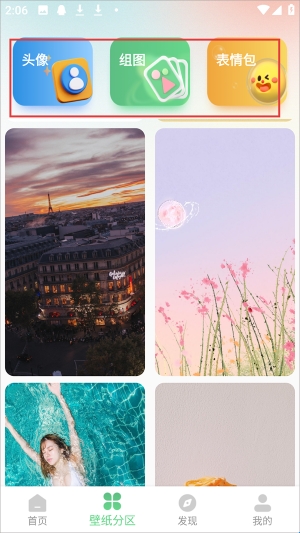 2、浏览喜欢的壁纸类型,可选择头像、表情包等资源。