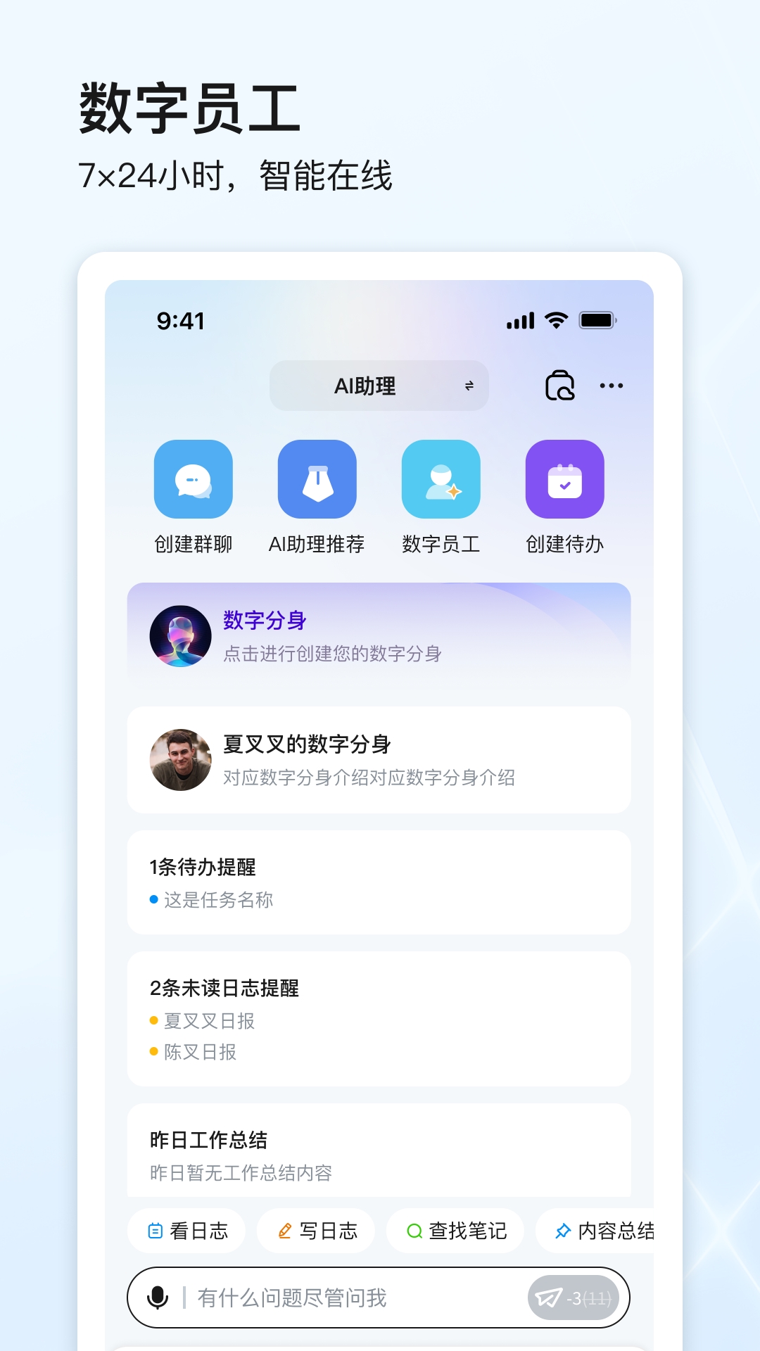 1、真正实现了企业数字化办公模式,同时可一键开启数字分身,全天都能智能办公。