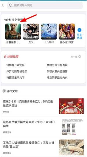 2、需要在其中搜索找到自己感兴趣的电影,或者通过“VIP影视免费看”功能点击进入电影的播放页面。