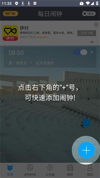 2、点击首页右下角的加号按钮开始创建新闹钟。