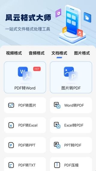 风云格式大师是一款功能强大的格式处理工具。软件适用于多种安卓设备,支持多种类型的资源导入,可以对视频、音频、图片、文档等数据进行格式转换,满足用户在日常、办公、娱乐、创作等场景下的文件处理需求。