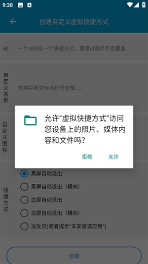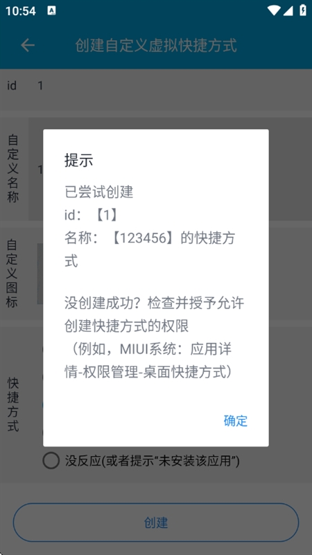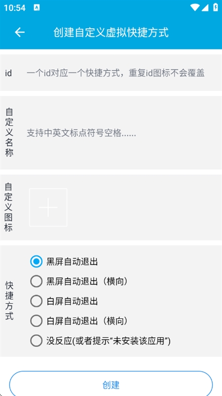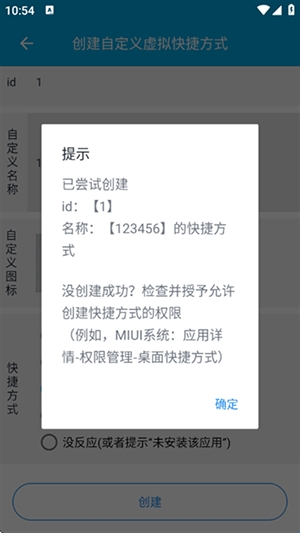 3、再接着自定义输入id,名称,图标,以及选择一个快捷方式之后,点击【创建】。