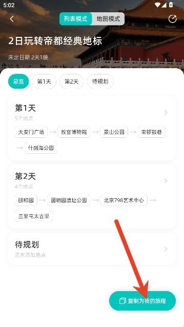 4、点击页面下方的复制为我的旅程按键,用户还可以编辑时间地点等信息。