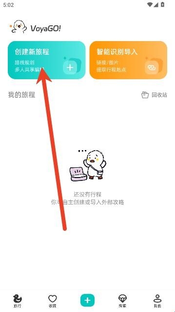 1、进入VoyaGO,点击旅行页面中的创建新旅程选项。