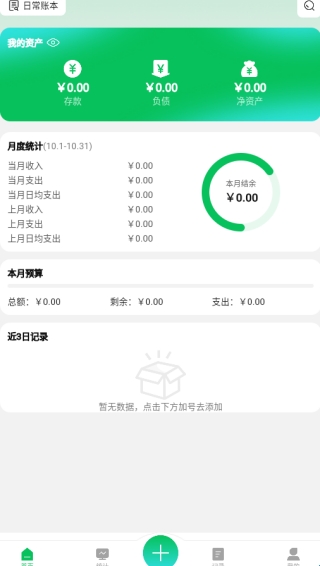 2、用户可以进入首页,在线点击+,进入记账中心。
