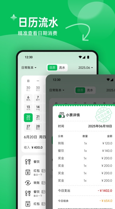 3、选择记账日期时,默认显示当天日期,也可通过日历控件一键切换至过往或未来日期。