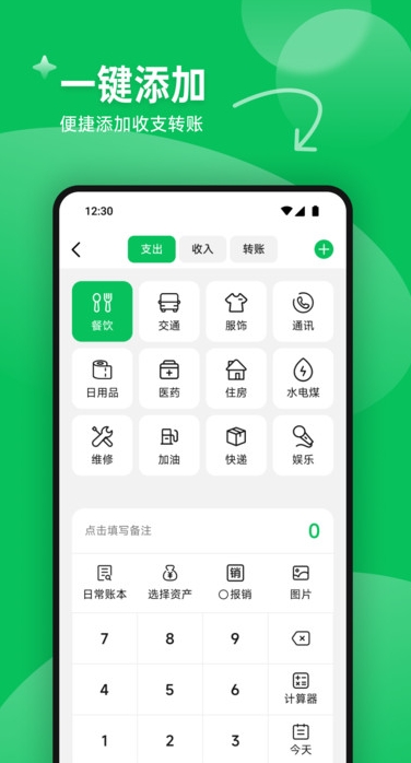 2、支持数字键盘快速输入,金额自动保留两位小数,避免手动计算误差。