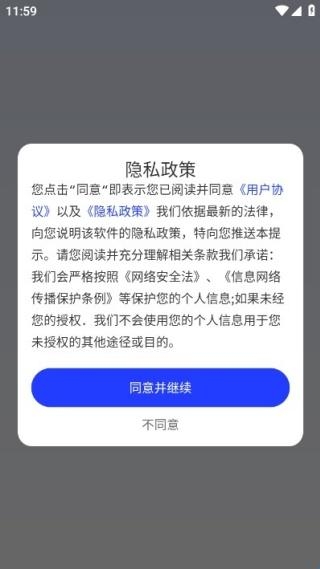 1、在线阅读用户协议以及隐私政策,了解最新的条款信息,点击同意并继续。