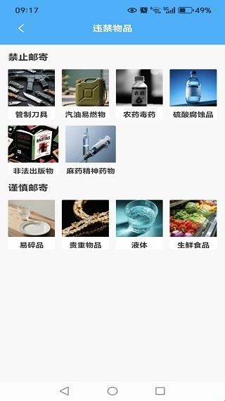 4、在违禁物品查询页面,能了解到哪些物品是无法进行快递邮寄的。