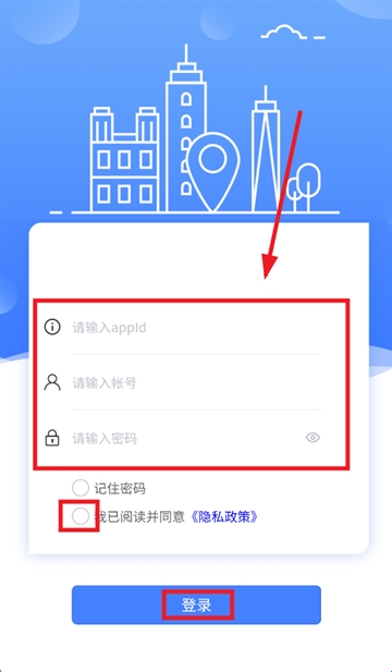 1、打开物企通app,进入后先输入登录相关信息,勾选我已阅读并同意《隐私政策》,点击登录。