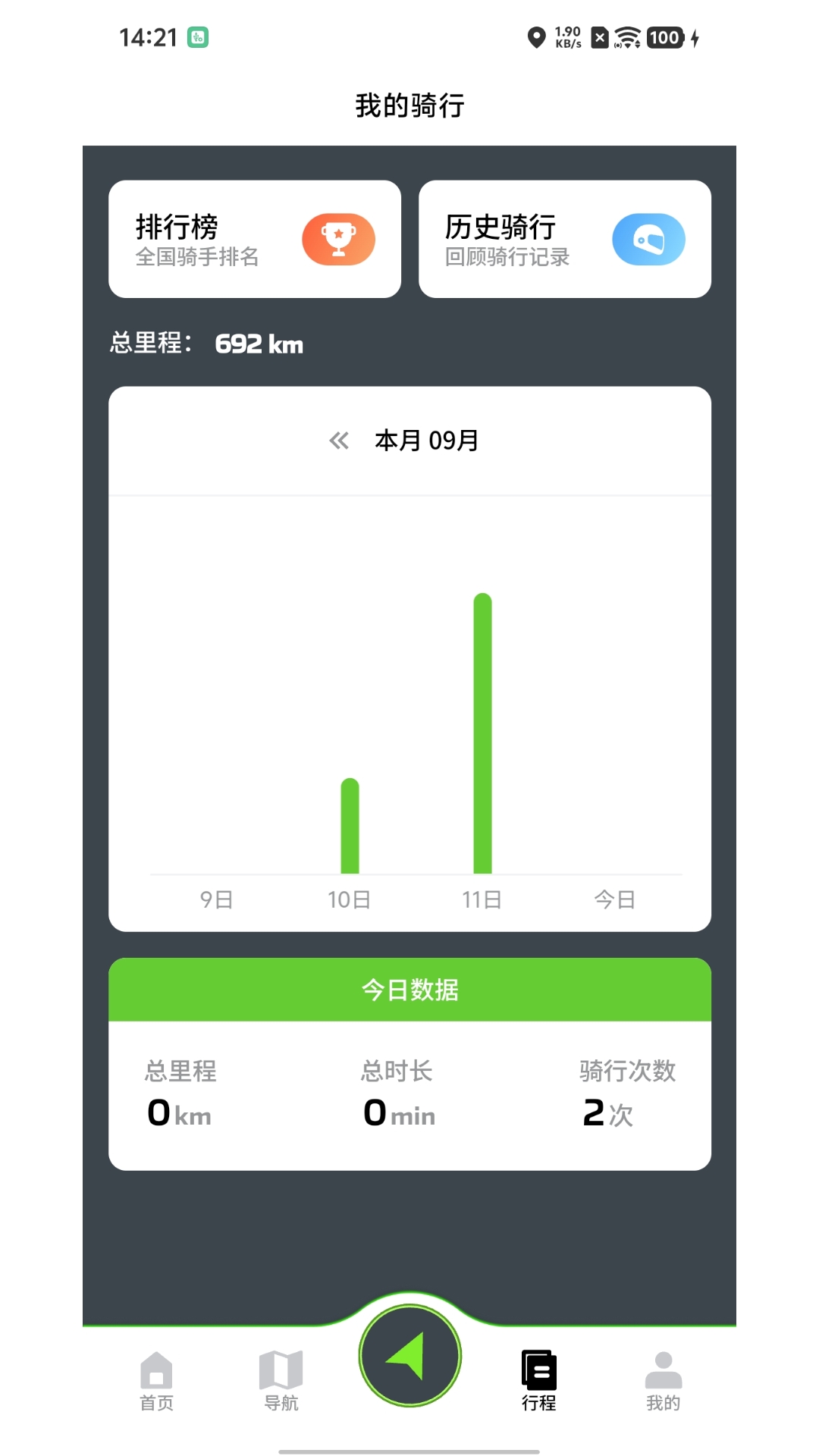 2、将用户的每一次骑行数据精准详细的记录统计可轻松掌握骑行数据。