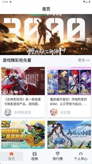1、安装进入首页,可以在游戏精彩抢先看板块浏览各个主题的视频讲解内容。
