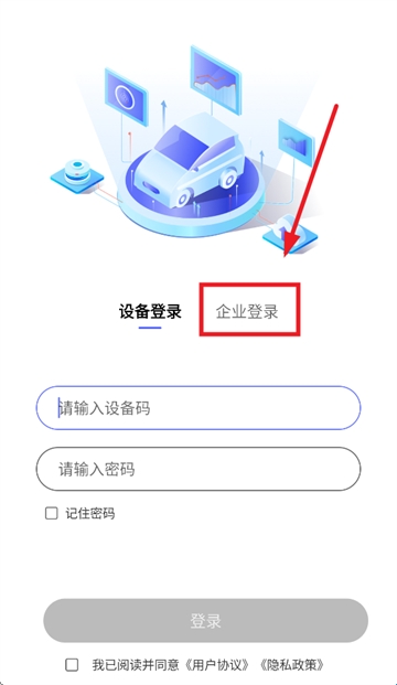 1、打开云谷车联app,进入登录界面后点击企业登录。