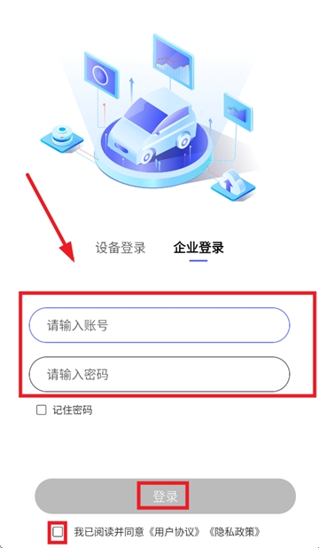 2、输入账号,密码,勾选我已阅读并同意《用户协议》《隐私政策》,点击登录即可。