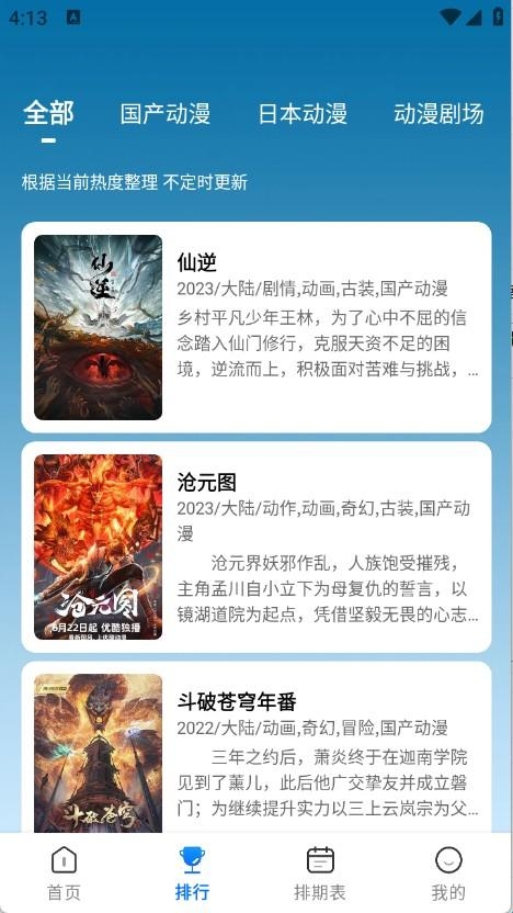 3、排期表提供每天动漫更新情况。