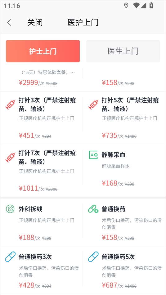 2、选择“护士上门”或“医生上门”,浏览医护人员信息。