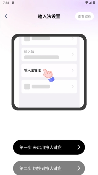 2、在输入法设置页面可以了解有两步进行操作,第一步是启用这个键盘;