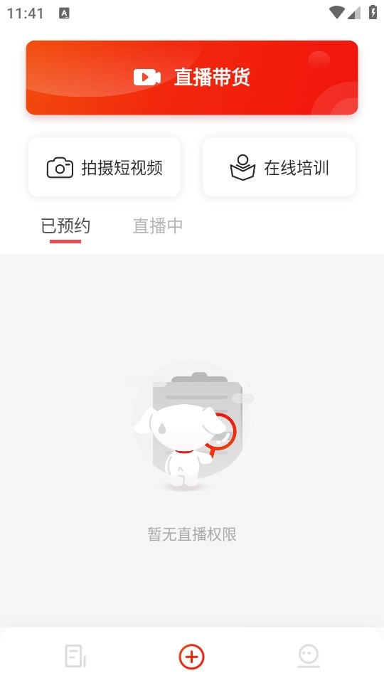 3、此时,软件会提示我们不具备开播权限,我们再点击下方的立即申请按钮。
