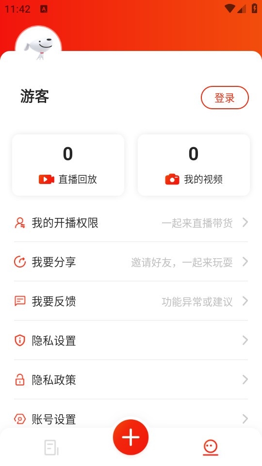 1、当我们打开京东创作工具app后,点击软件正下方的红色加号。