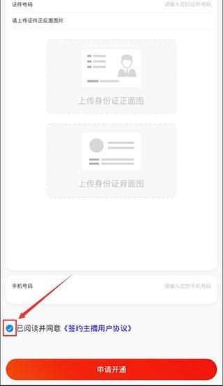 4、进入到主播入驻页面后,我们需要完善上面的所有信息。
