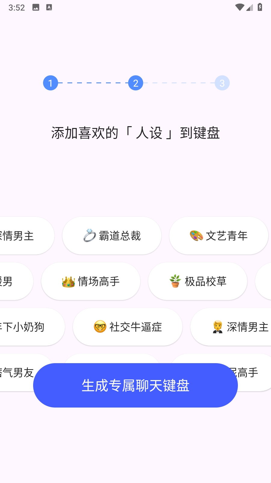 3、你可以为自己选择一个人设,然后生成定制输入法。