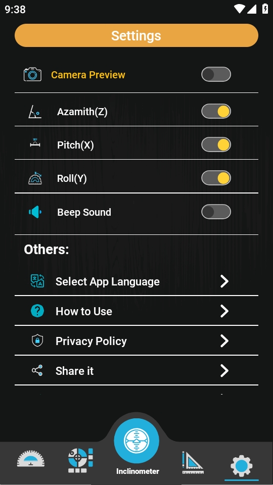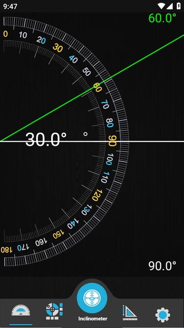 2、App支持实时测量各种角度,简单易用的倾斜仪应用。
