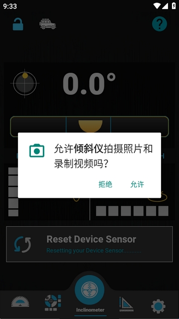 5、进入软件中间Inclinometer倾斜仪可以直接开始测量。