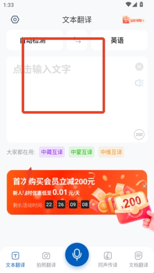 2、使用语音翻译功能按住麦克风图标说话,系统会自动识别语音并同步转换为文字翻译,适合面对面对话场景。