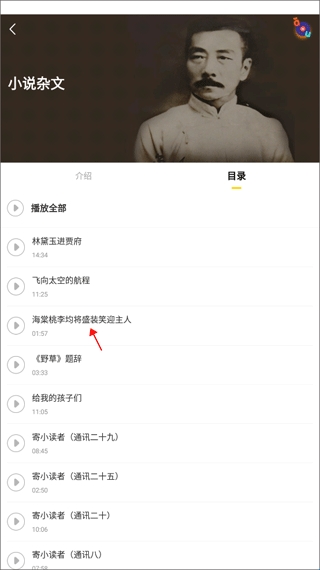 2、这里有很多不同类型的诵读书单,选好你要朗诵的文学作品之后直接进入到界面。